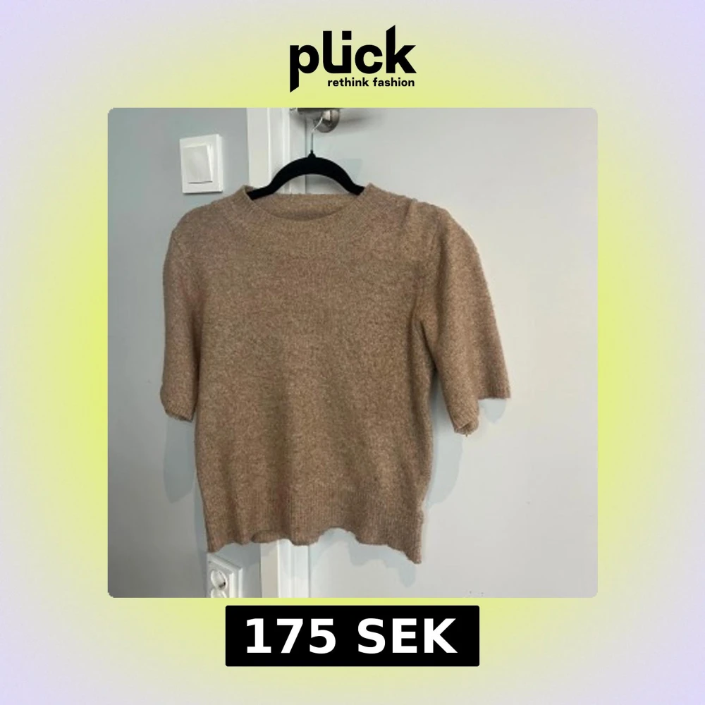 Mysig beige stickad t-shirt från By Swan med rund halsringning och kortare ärmar. Tröjan har en enkel och stilren design med ribbade muddar vid hals, ärmslut och nederkant. Skicka gärna till mig vid vidare frågor😊🫶🩷