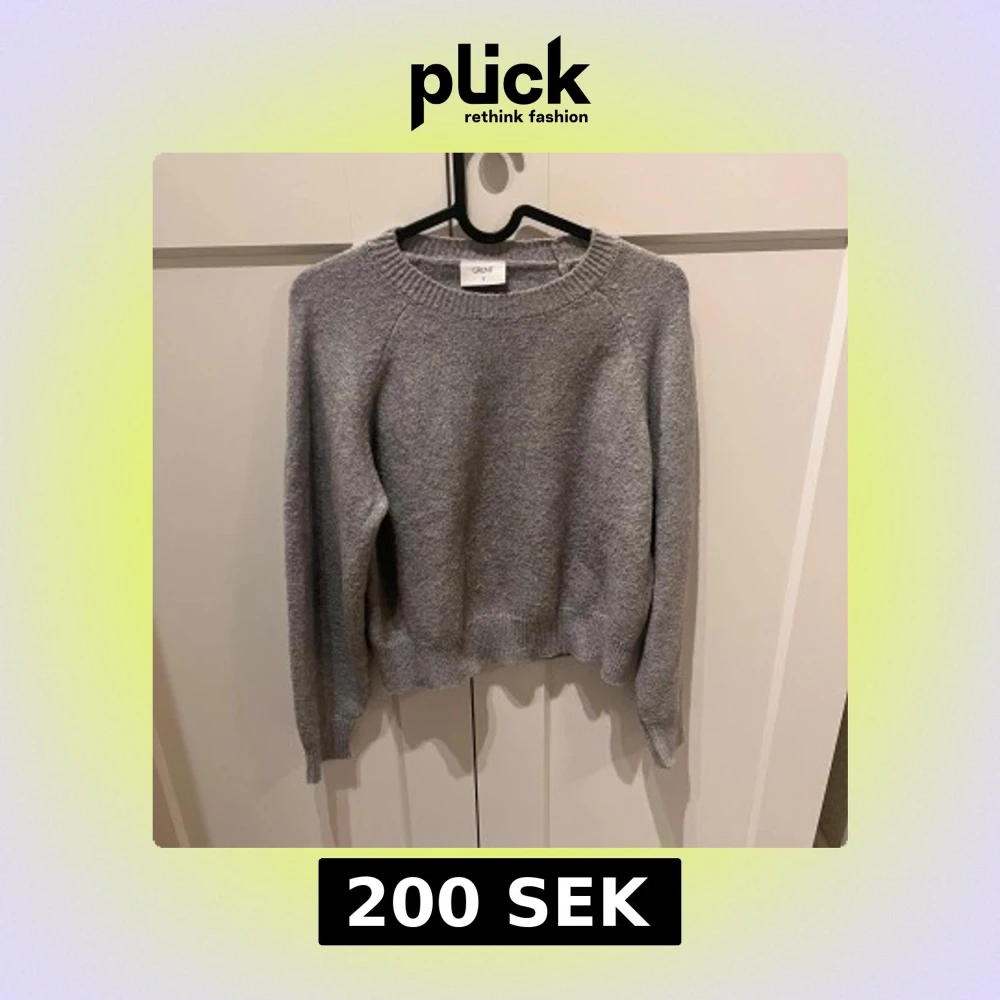 Säljer en stilren grå stickad tröja från Grunt. Tröjan har en rund hals och långa ärmar. Den är i gott skick. Storlek S men motsvarar ungefär storlek 152