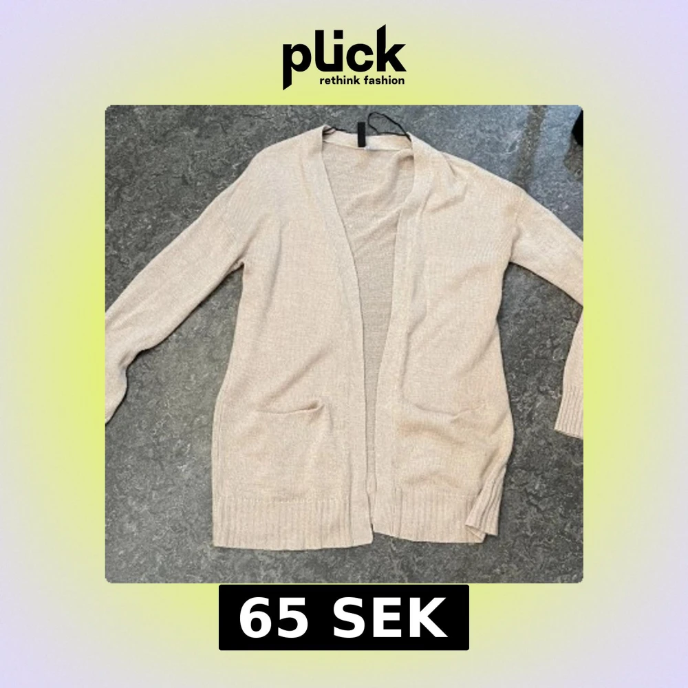 Ljusbeige, långärmad kofta från H&M Divided i storlek S. Öppen framtill, två fickor och ribbade muddar vid ärmslut och nederkant. Mjuk och stickad i bomullsblandning, perfekt för lager-på-lager under höst och vår.