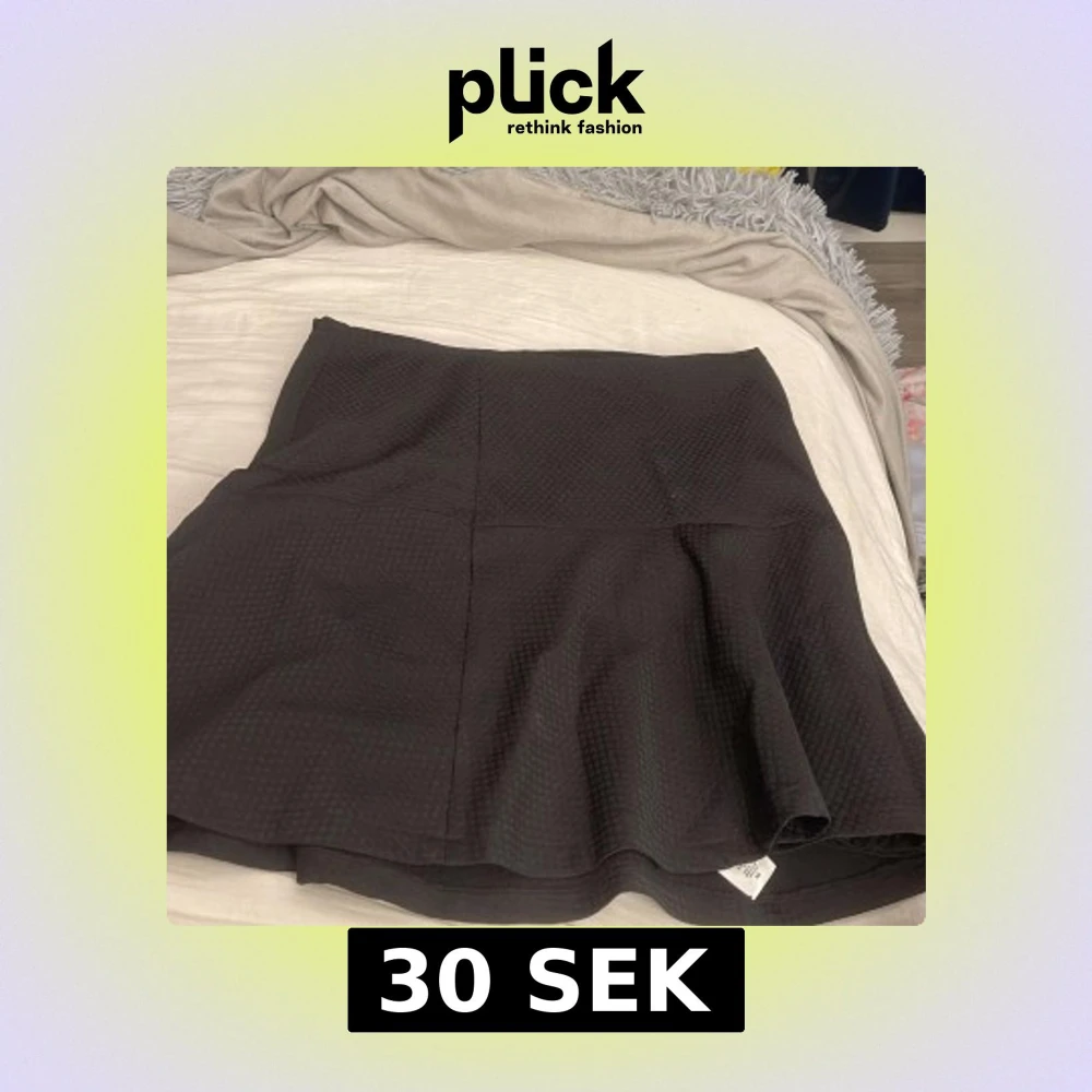 Säljer en svart kortkjol från Zoul Edition i storlek S. Kjolen har en lätt utsvängd form och ett diskret rutmönster i tyget som ger en cool struktur. Perfekt att styla med en stickad tröja eller en snygg topp.