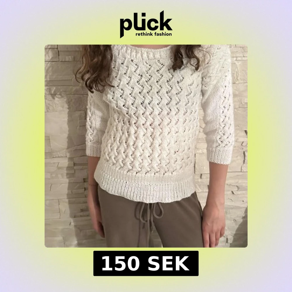 Säljer en vit stickad tröja med snyggt flätmönster. Perfekt för lager-på-lager under kyliga dagar. Pris kan diskuteras.