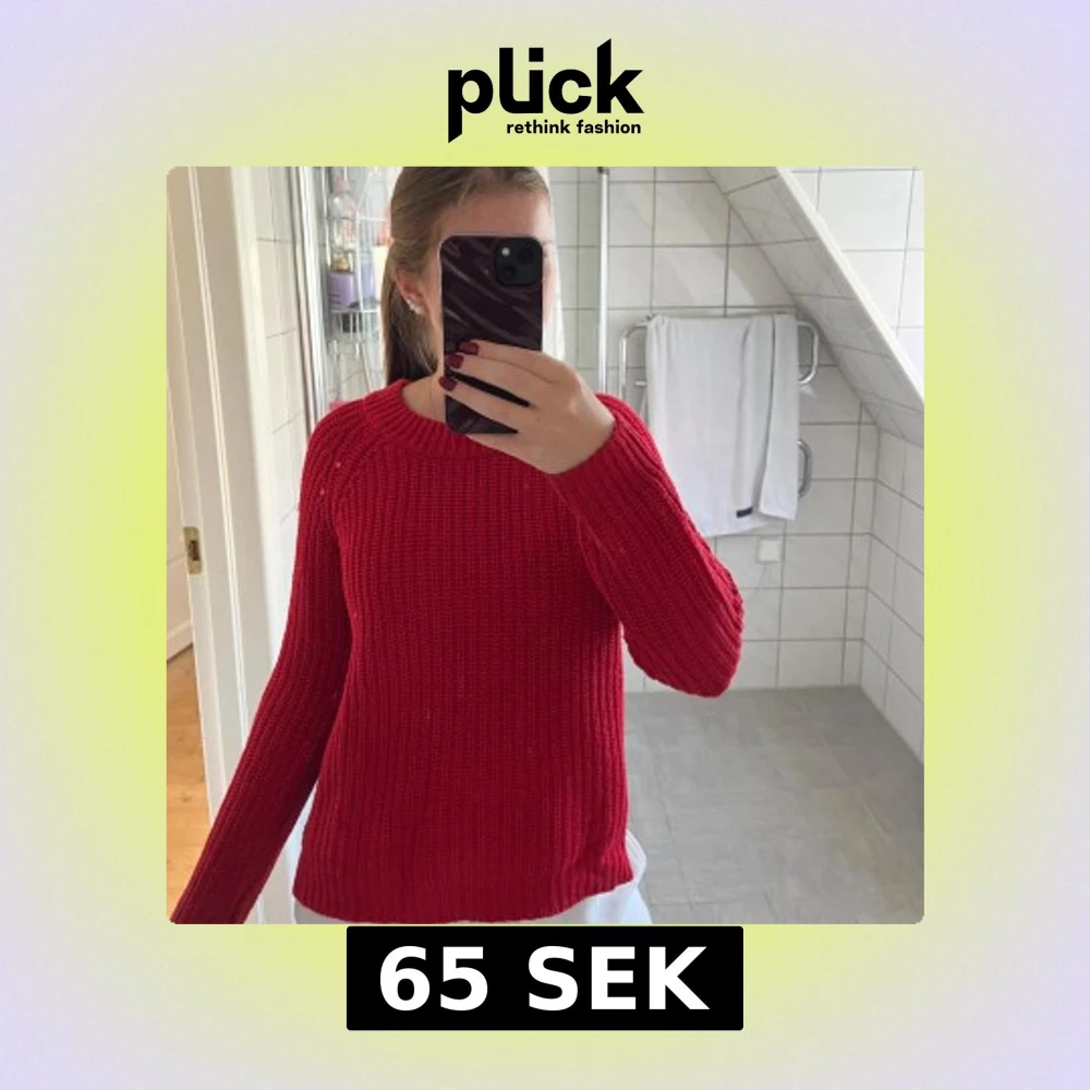 Superfin röd stickad tröja i tjockt material. Små slitsar vid sidorna och en rundad hals. Säljer då den inte kommer till användning tyvärr❤️ strl S