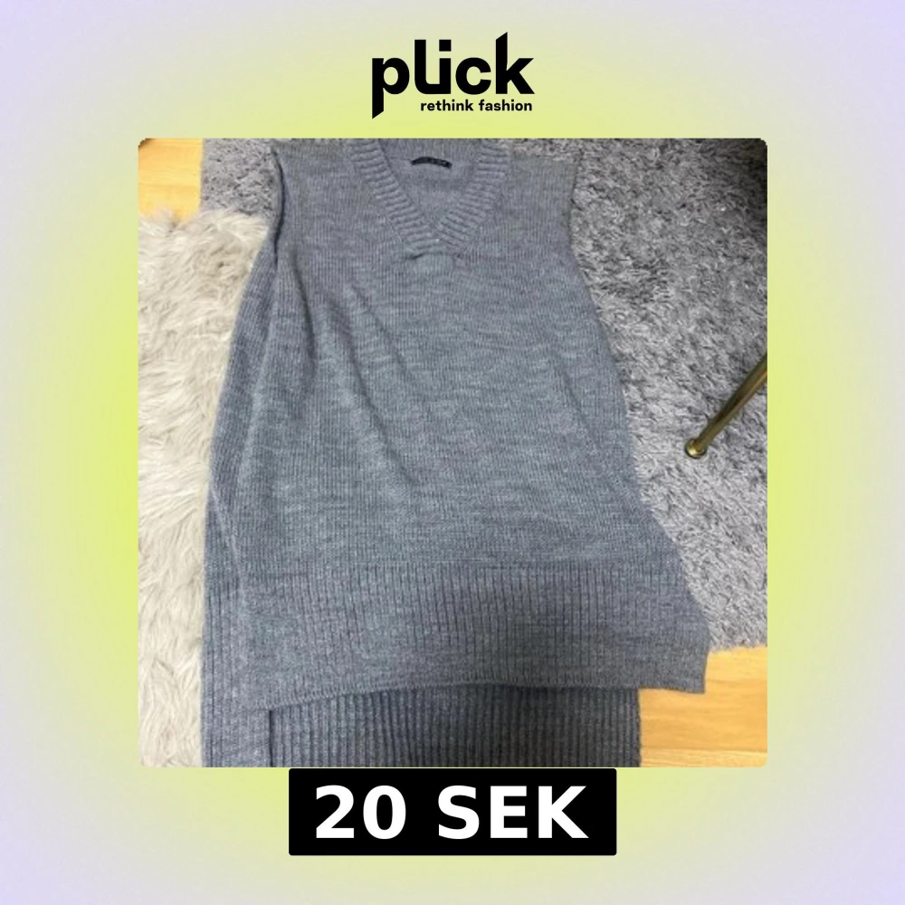 Snygg grå stickad långklänning med v-ringning och ärmlös design. Klänningen har bred ribbad kant nedtill och runt halsen, vilket ger en cool och avslappnad look. Perfekt för lager-på-lager-stil under kallare dagar.