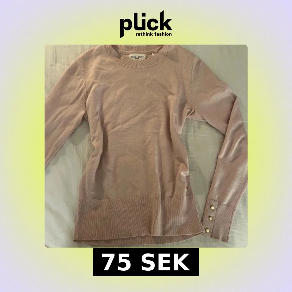 Supersöt ljusrosa stickad tröja från Holly & Whyte by Lindex. Tröjan har rund hals, långa ärmar och snygga guldfärgade knappar vid ärmsluten. Ribbad kant nedtill och vid ärmslut ger en clean look. Perfekt att matcha med jeans eller kjol.