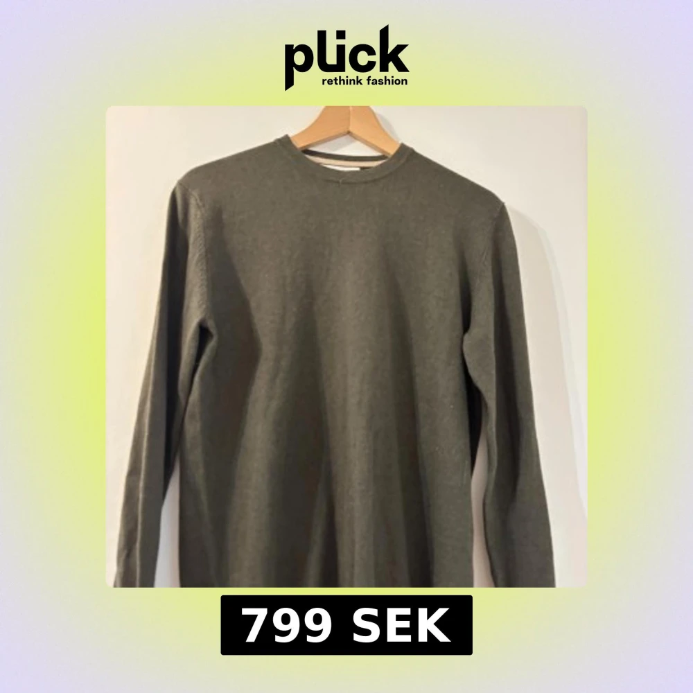 En stilren mörkgrön stickad tröja från Bruun & Stengade i storlek S. Tröjan har rund halsringning och långa ärmar, perfekt för dig som gillar enkel och clean look. Materialet är en kashmir blanding