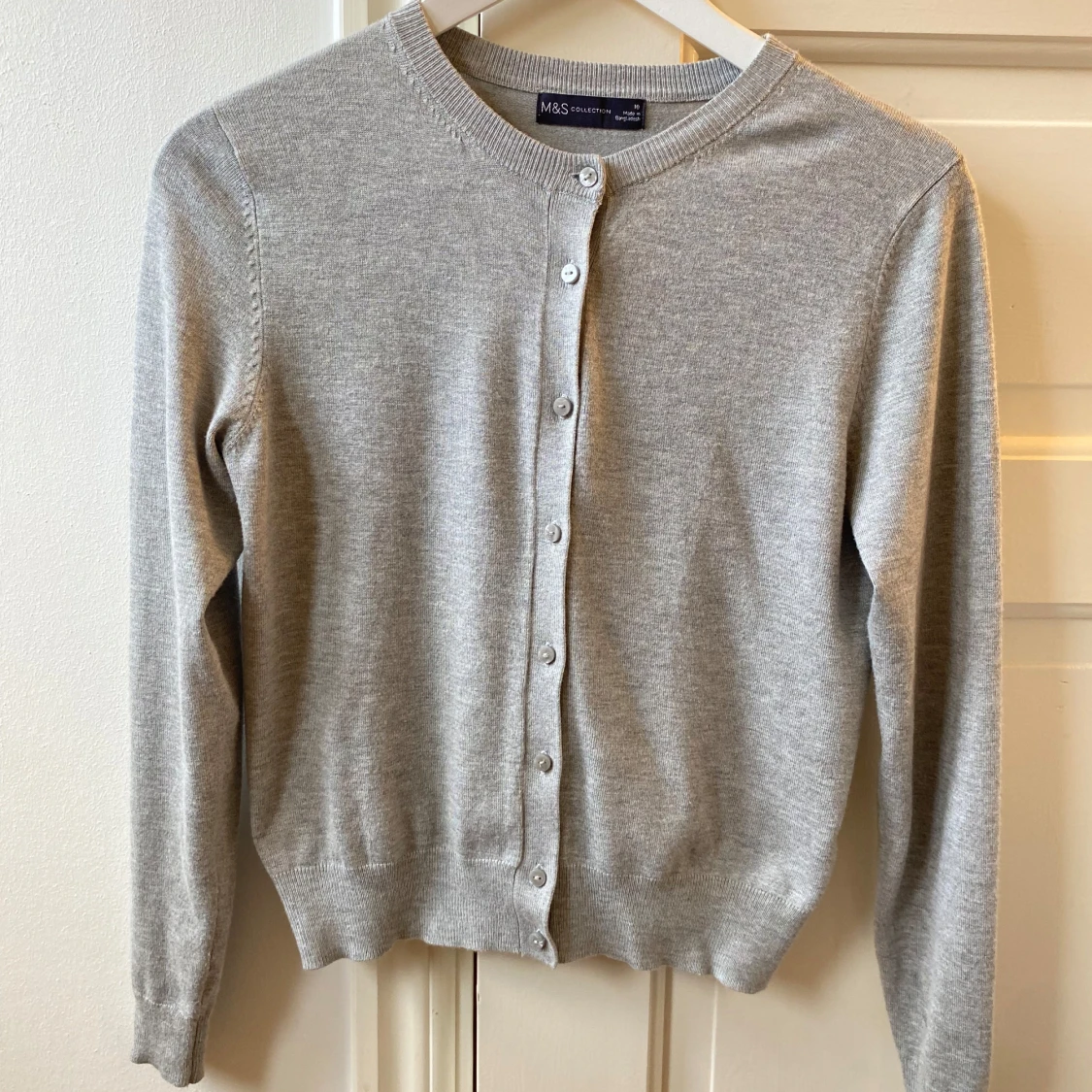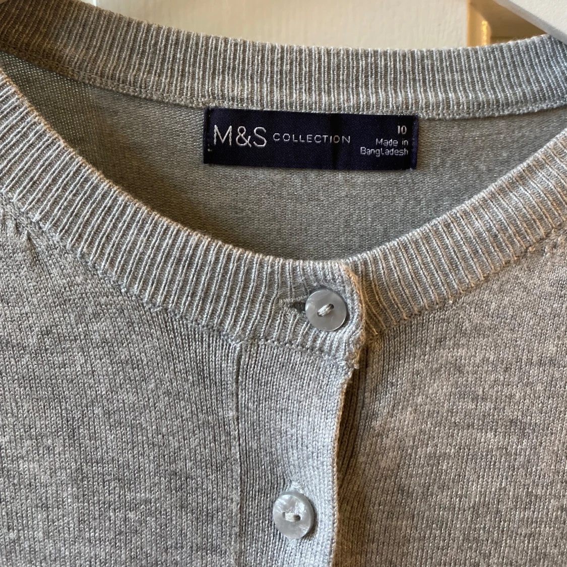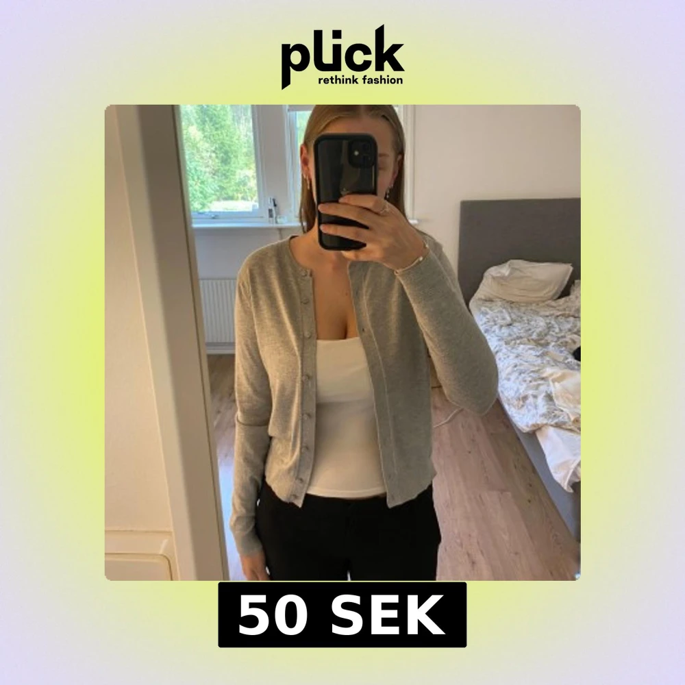 Jätte söt tunn grå kofta, suuper len i materialet🩷står att den är i st 38 men skulle säga att den mer är i st 34/36