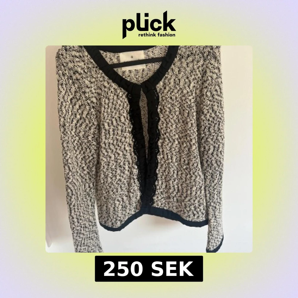 Aldrig använd!! Säljer en slutsåld svartvit kofta med lång ärm och dekorativ volangkant längs öppningen. Koftan har ett stickat mönster och svarta detaljer vid kanterna. Perfekt för att lyfta en enkel outfit! Nypris 400kr🤍