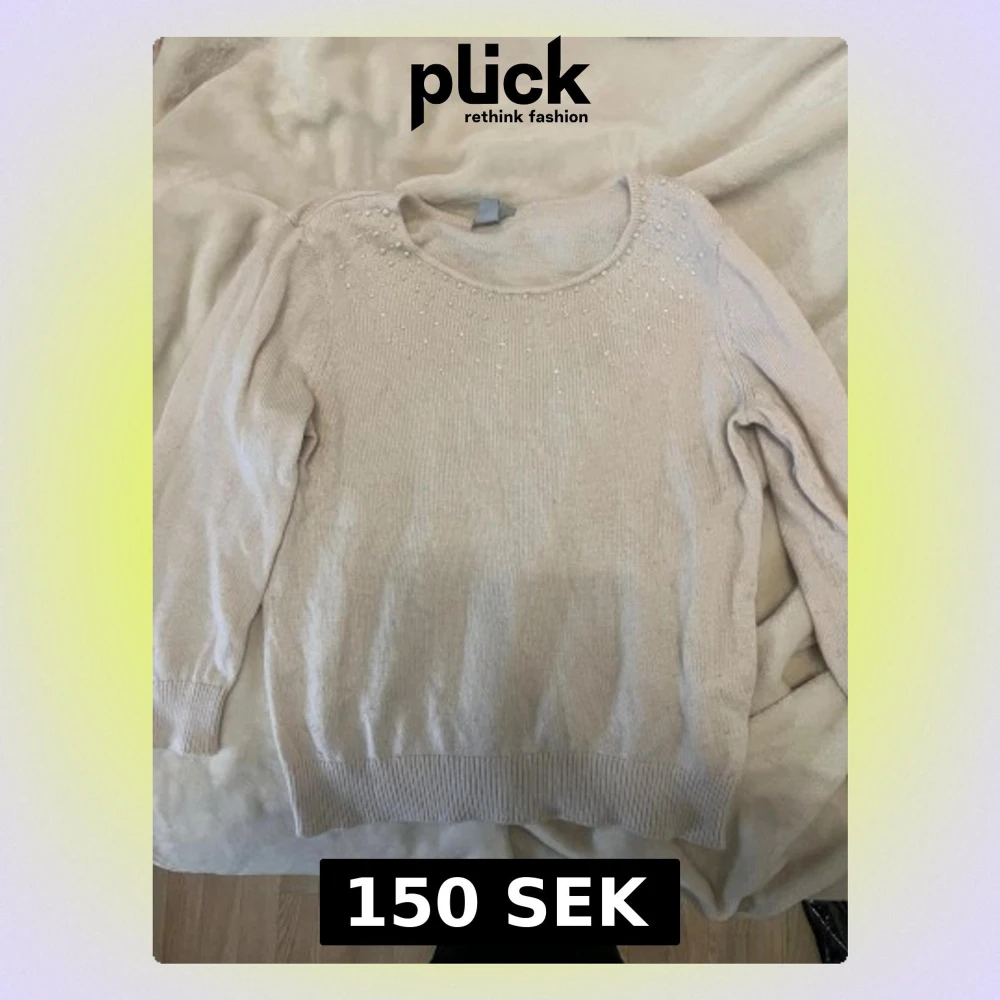 Snygg beige stickad tröja med rund hals och pärldetaljer vid axlar och halsringning. Tröjan har långa ärmar och ribbade muddar vid ärmslut och nederkant. Perfekt för dig som gillar stilrena detaljer och mjuka material.