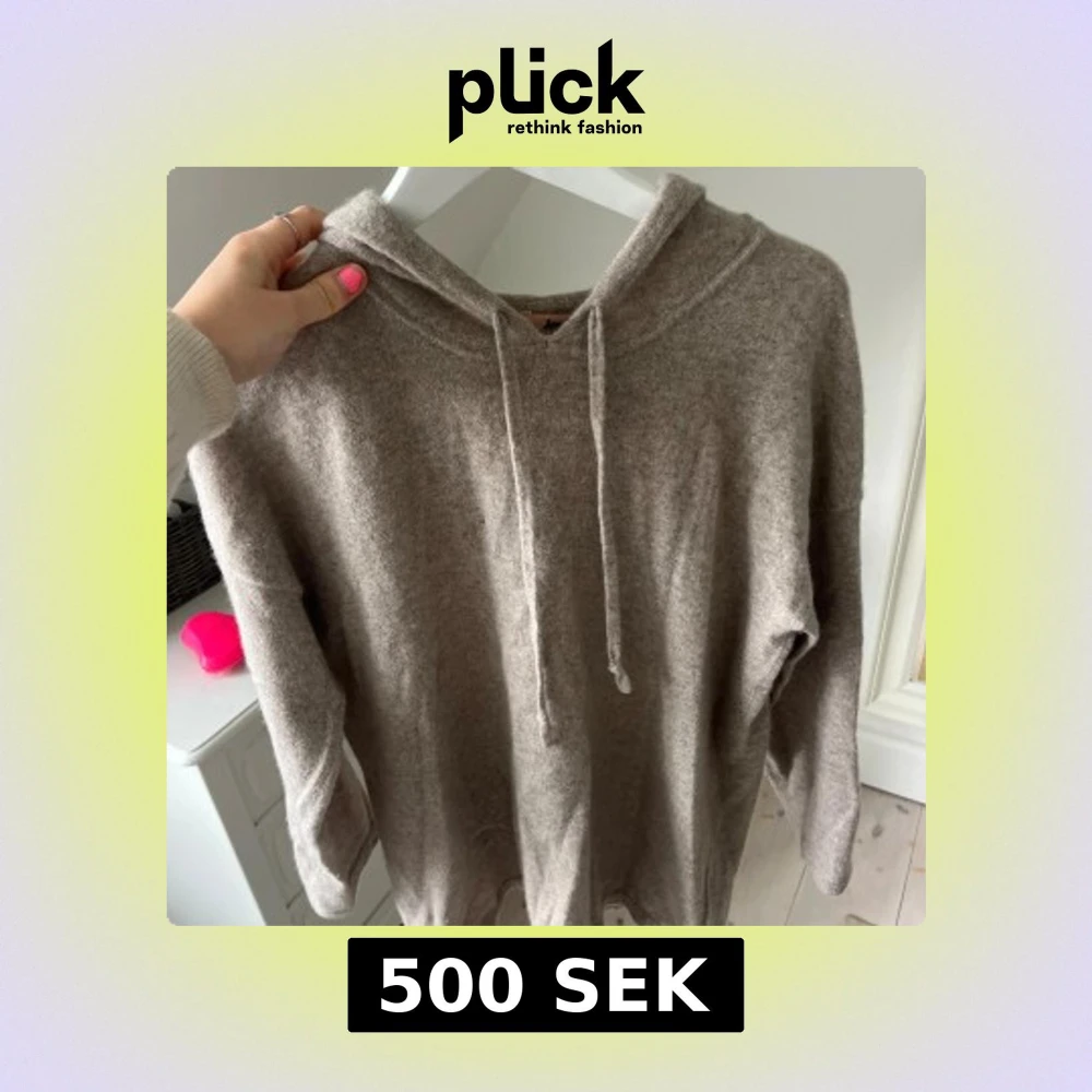 Beige stickad hoodie - Mysig beige stickad hoodie med breda ribbade muddar vid ärmslut och nederkant. Tröjan har en stor huva och är långärmad med loose passform. Perfekt för chill dagar och när du vill ha det extra bekvämt. Aldrig använd!