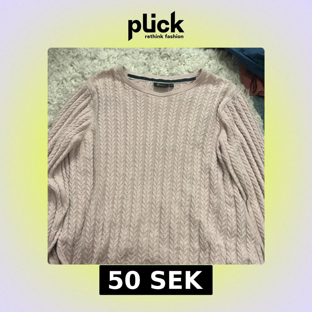 Säljer en ljusrosa stickad tröja från Jeansro i storlek S. Tröjan har ett snyggt flätmönster över hela och rund halsringning. Perfekt för dig som gillar mjuka och mysiga plagg med lite extra stil. Långärmad och passar till många olika looks.