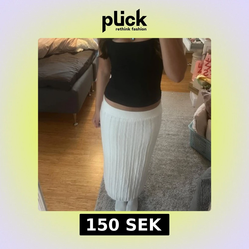 Säljer en superfin vit långkjol i stickat material med ribbad struktur🩷