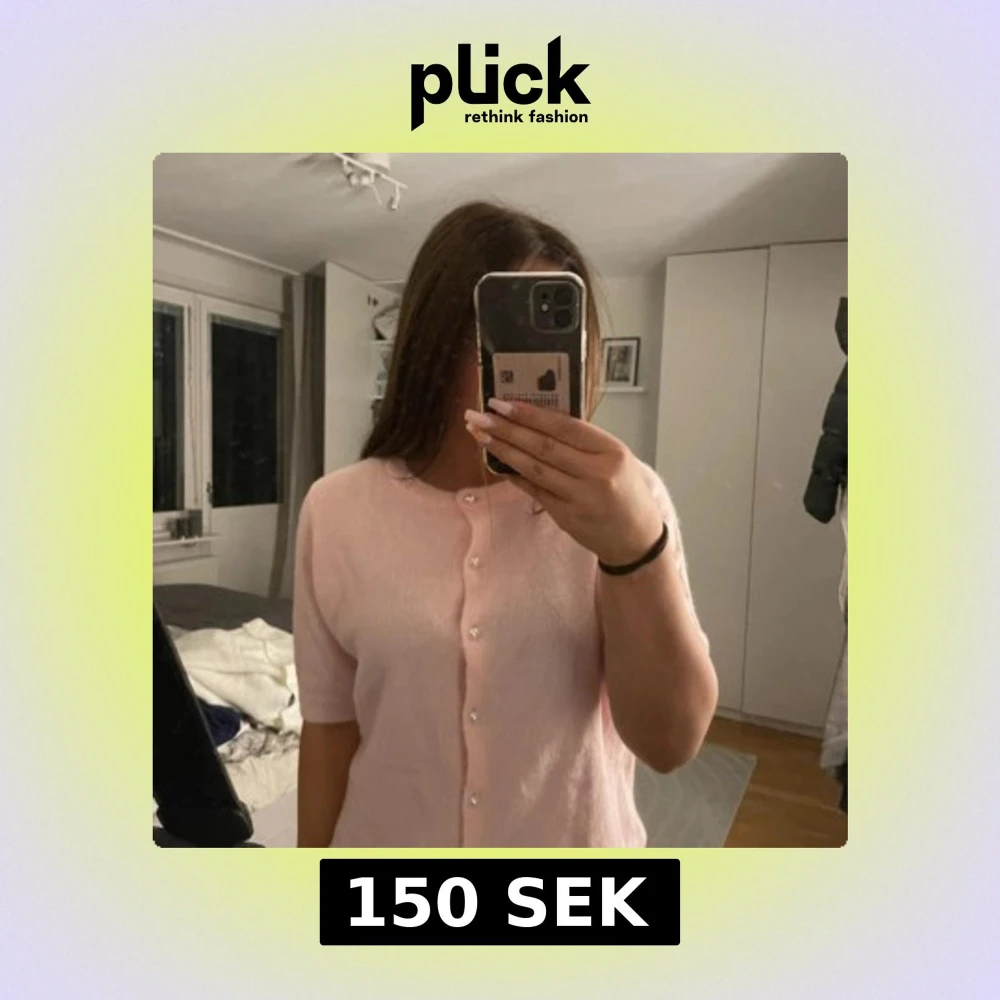 Superfin ljusrosa kofta med kort ärm och pärlknappar framtill. Mjuk och fluffig känsla, perfekt för vår eller sommarkvällar. Enkel och söt design som är lätt att matcha med olika outfits. Stickad t-shirt m.pärlor st S Endast testad