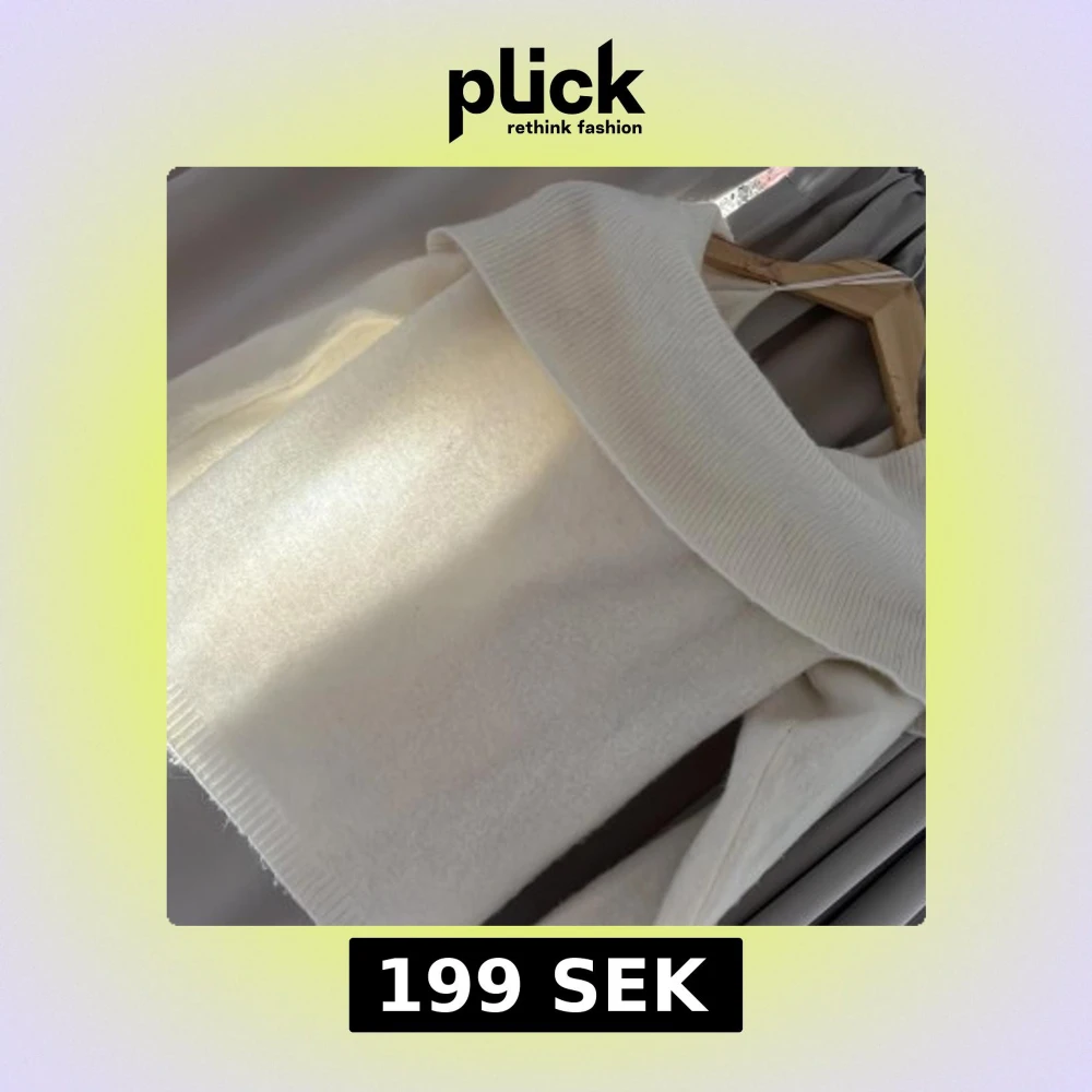 Säljer en stilren vit stickad tröja från märket C. Tröjan har en bred krage och långa ärmar, perfekt för kyligare dagar. Den är mjuk och bekväm att bära. Passar bra till allt