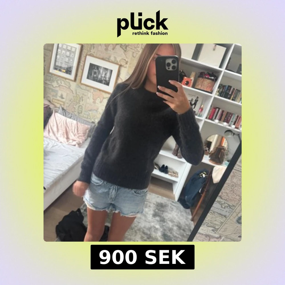 Mysig mörkgrå Kashmir tröja med rund hals och långa ärmar. Tröjan har en enkel och klassisk design som passar perfekt till jeans eller kjol. Den är mjuk och skön, perfekt för kyligare dagar.