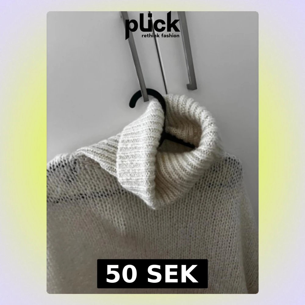 Mysig vit stickad polotröja med oversized passform och bred, ribbad polokrage. Perfekt för kalla dagar och enkel att styla med jeans eller kjol. Tröjan har långa ärmar och är riktigt fluffig och skön.