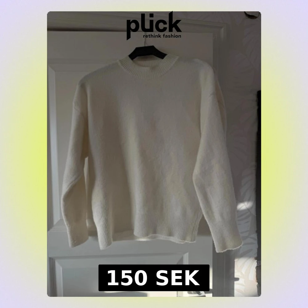 Klassisk vit stickad tröja med ett väldigt skönt material. Tröjan är S men passar även M.