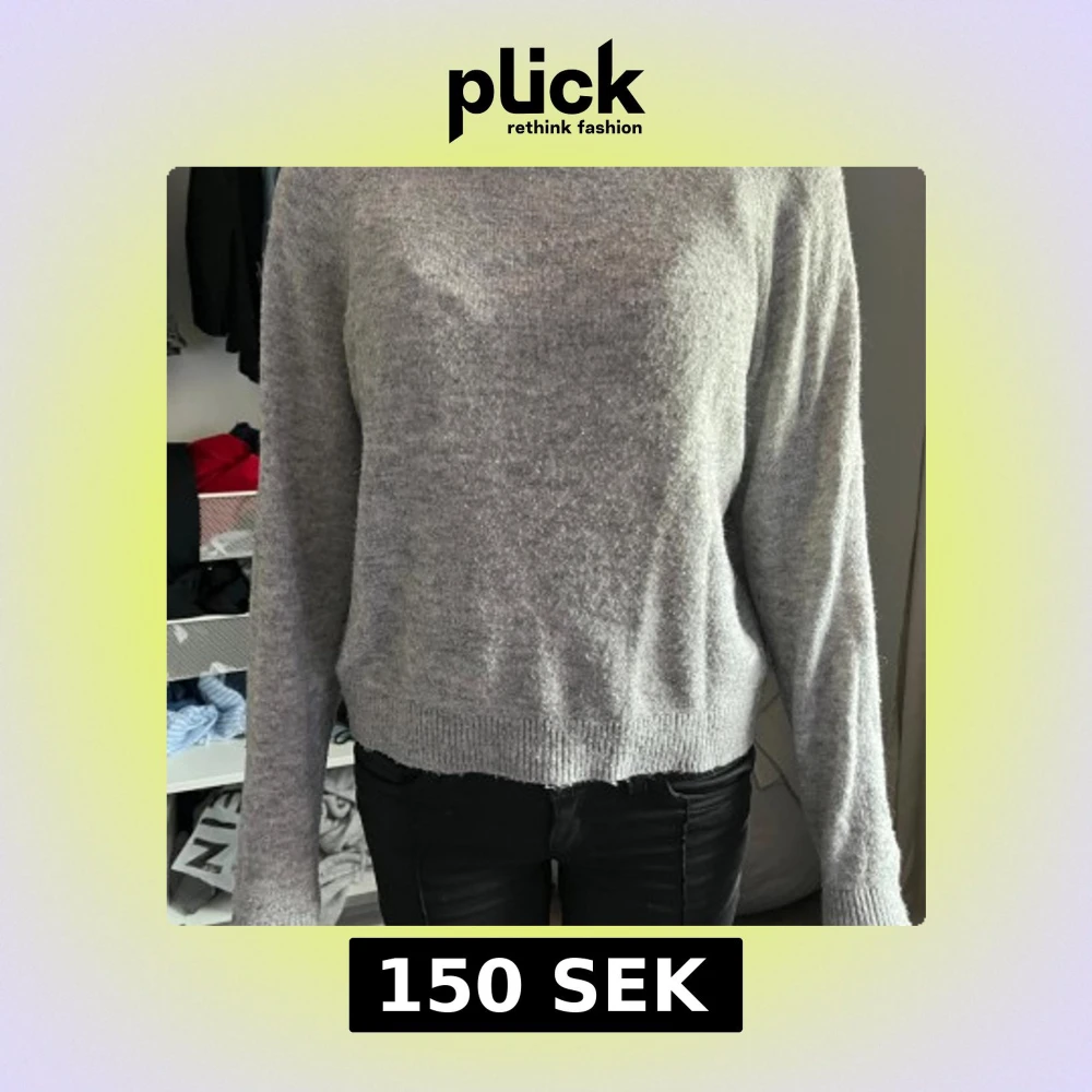 Mysig grå stickad tröja med rund hals och ribbade muddar vid ärmslut och nederkant. Modellen är lite loose och har långa ärmar, perfekt för att hålla sig varm under kyliga dagar. Enkel och stilren design som funkar till många olika outfits.
