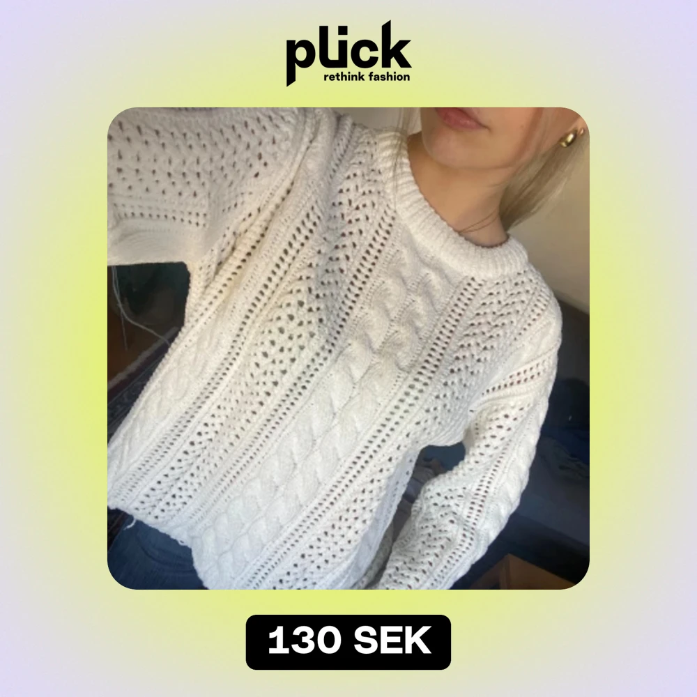 Vit stickad tröja Lappen är borta men skulle säga storlek S om man vill ha lite oversize💕 100% polyester, lite sliten längst ner!
