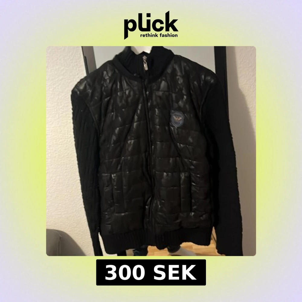 Svart jacka från Emporio Armani med quiltad framsida i blankt material och stickade ärmar och rygg. Jackan har dragkedja framtill, ribbad krage och muddar samt en snygg logotyp på bröstet. Perfekt för dig som vill ha en stilren och exklusiv look.