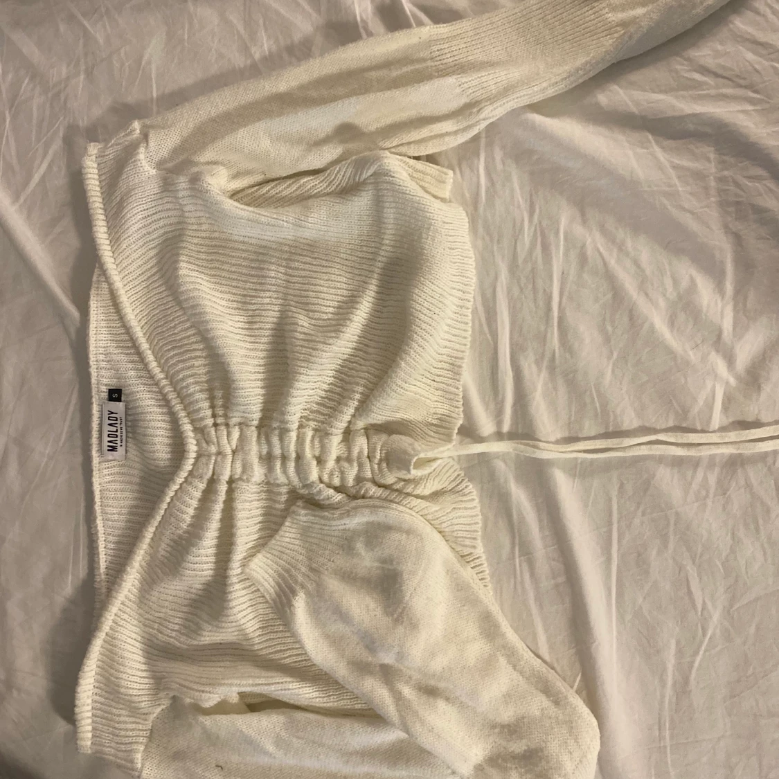 Stickad tröja från Madlady som är justerbar i fram med banden. Relativt stor i storleken