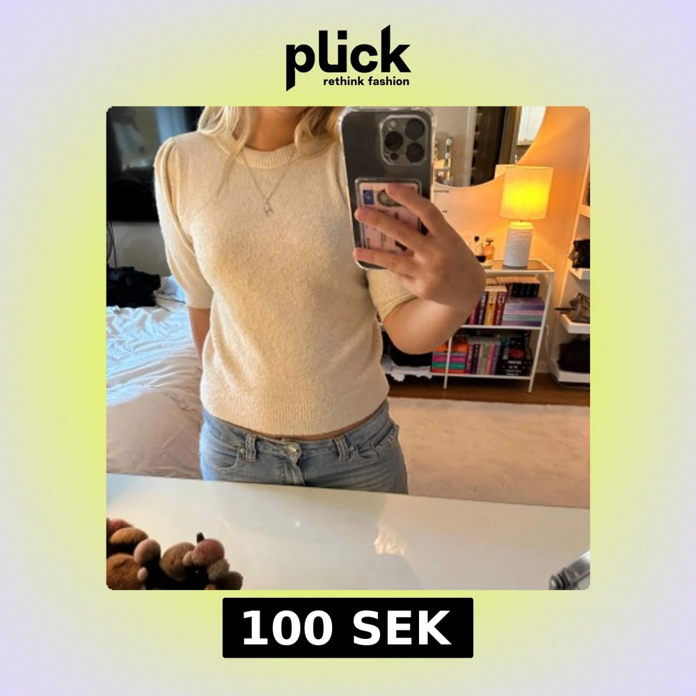 Superfin beige stickad tröja med puffiga ärmar och rund halsringning. Tröjan har en mjuk och mysig känsla, ribbade muddar och en lite kortare passform som sitter snyggt till jeans eller kjol.🥰💞