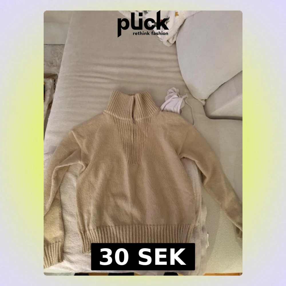 Snygg beige stickad polotröja med ribbad krage och half zip framtill. Tröjan har långa ärmar och breda ribbade muddar vid nederkant och ärmslut. Perfekt för dig som gillar en chill och stilren look.