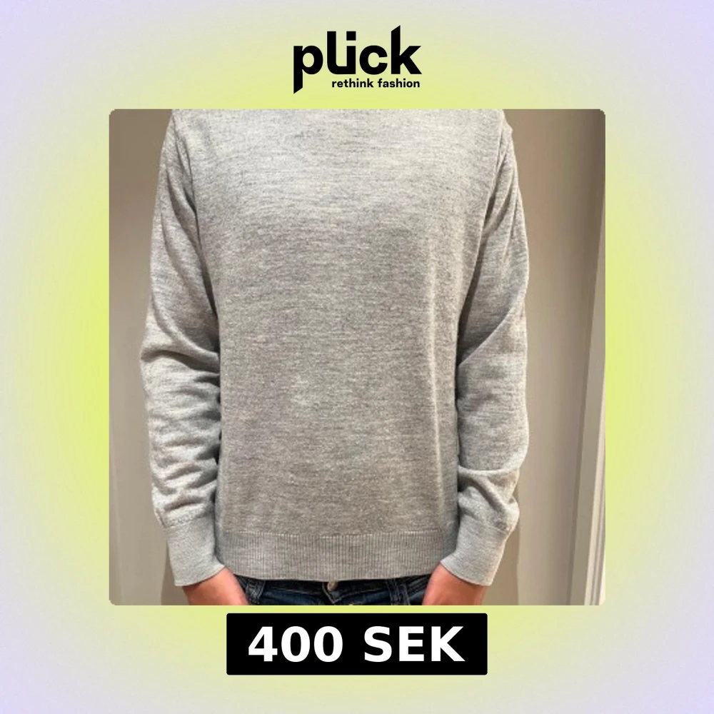 En stilren grå stickad tröja med rund hals och ribbade muddar vid ärmslut och nederkant. Tröjan har en klassisk passform och är perfekt för lager-på-lager. Enkel att matcha med jeans eller andra byxor för en clean look. Jätte bra skick, passar S/M