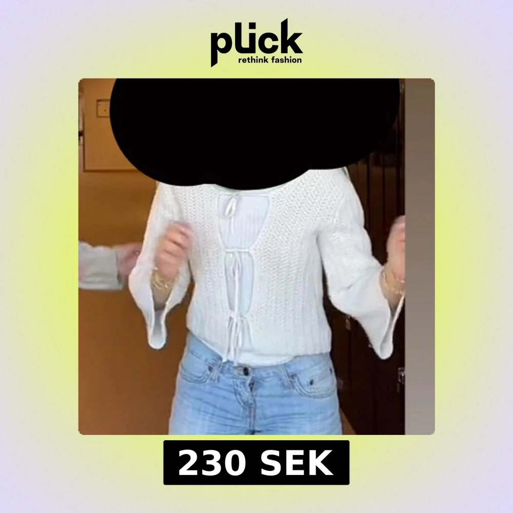 Superfin vit/beige stickad kofta med långa ärmar och tre knytband framtill. Koftan har en lätt croppad passform och är perfekt att slänga över ett linne. Materialet är mjukt och luftigt, vilket gör den skön att bära under både vår och sommar.