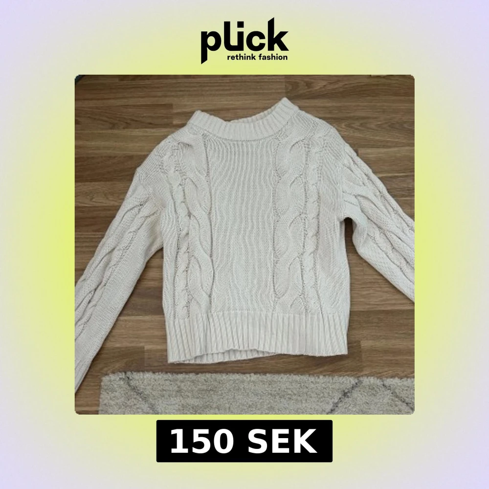 Snygg beige stickad tröja från Samsa Collection med grova flätstickade detaljer på både fram- och ärmsidor. Använd endast två gånger