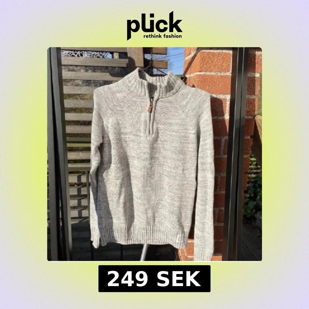 Säljer en stilren grå stickad tröja från L.O.G.G. med dragkedja vid halsen. Tröjan har långa ärmar och ribbade muddar vid ärmslut och nederkant. Perfekt för kyligare dagar. Storleken XS