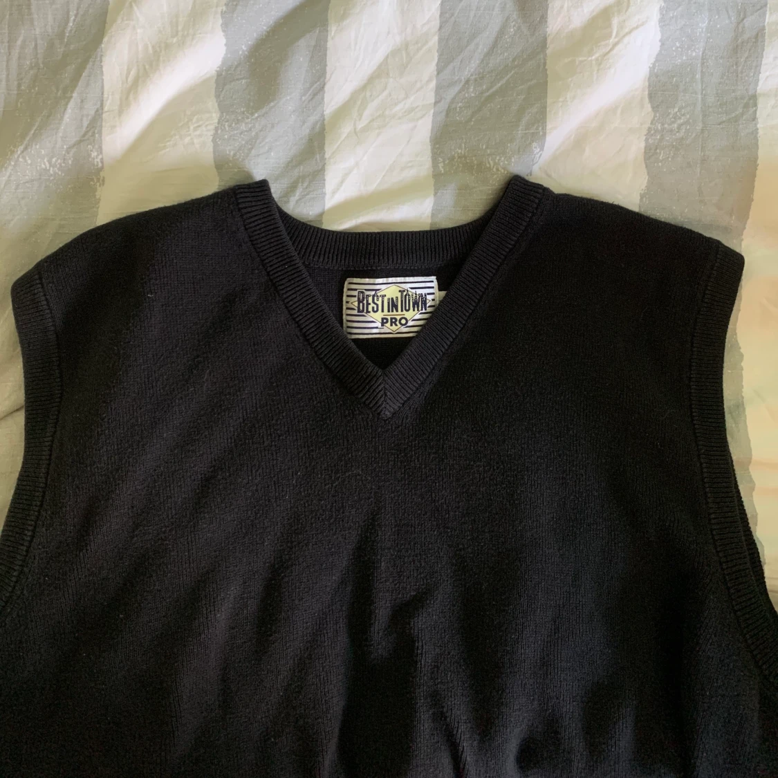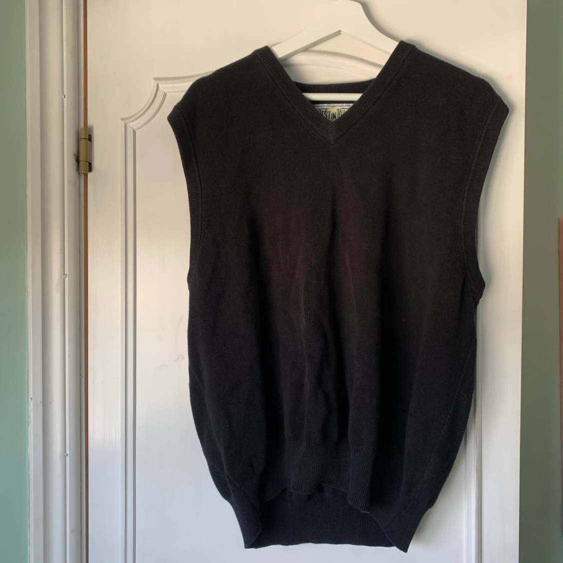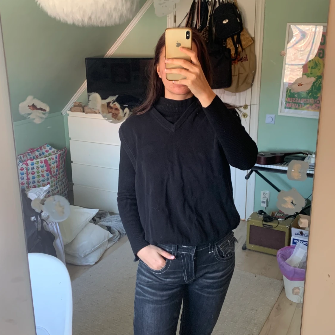 Söt svart väst köpt second hand!! Bra material och i lite oversized. Skulle säga att den är M/L men jag som är S använder den som lite baggy. 💓✨