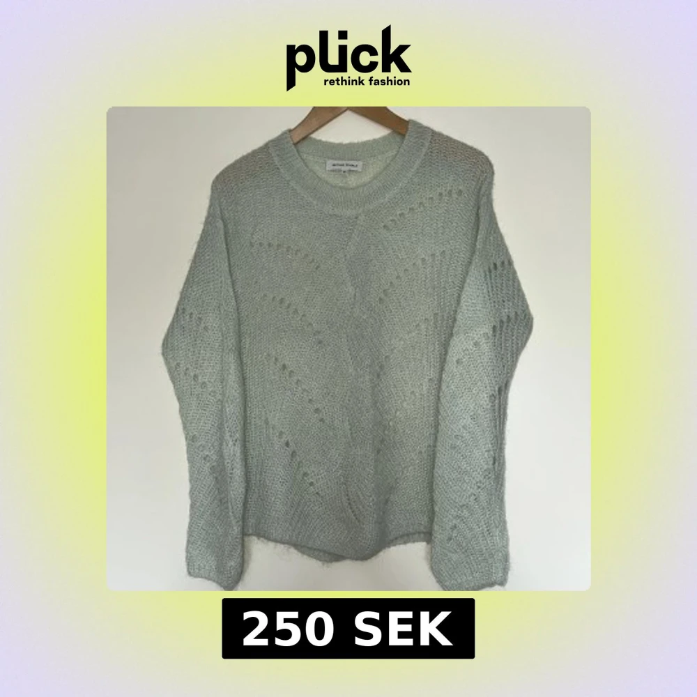 Mysig ljusgrön stickad tröja från Second Female i storlek XS. Tröjan har ett diskret hålmönster och rund halsringning. Perfekt för lager-på-lager och passar till många olika stilar. 40% polyamid, 32% mohair, 28% ull