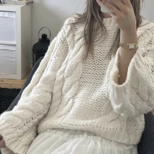Kabelstickad tröja från NA-KD. Använd ca två gånger. Superfin och passar till alla tillfällen. Storleken är XXS-XS men jag skulle säga att den passar för dem som är M också. Jag är normalt en S och för mig är den lite stor. Nypris ca 600-700 kr ✨
