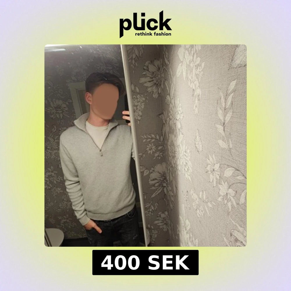 Säljer en stilren ljusgrå stickad tröja från Selected Homme. Tröjan har en snygg half zip-dragkedja vid kragen och är långärmad med ribbade muddar. Skriv om fler bilder eller om nån fråga om tröjan