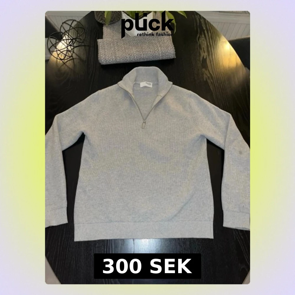 Säljer en ljusgrå stickad quarter-zip från Selected Homme med half zip och hög krage. Tröjan har lång ärm och ribbade muddar vid ärmslut och nederkant. Perfekt för lager på lager under höst och vinter.
