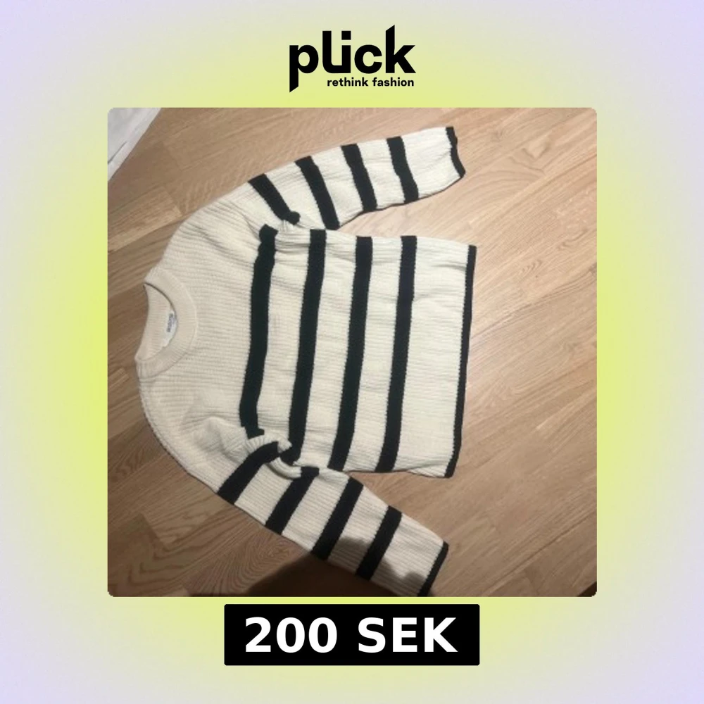 Säljer en vit stickad tröja från Selected med svarta ränder.