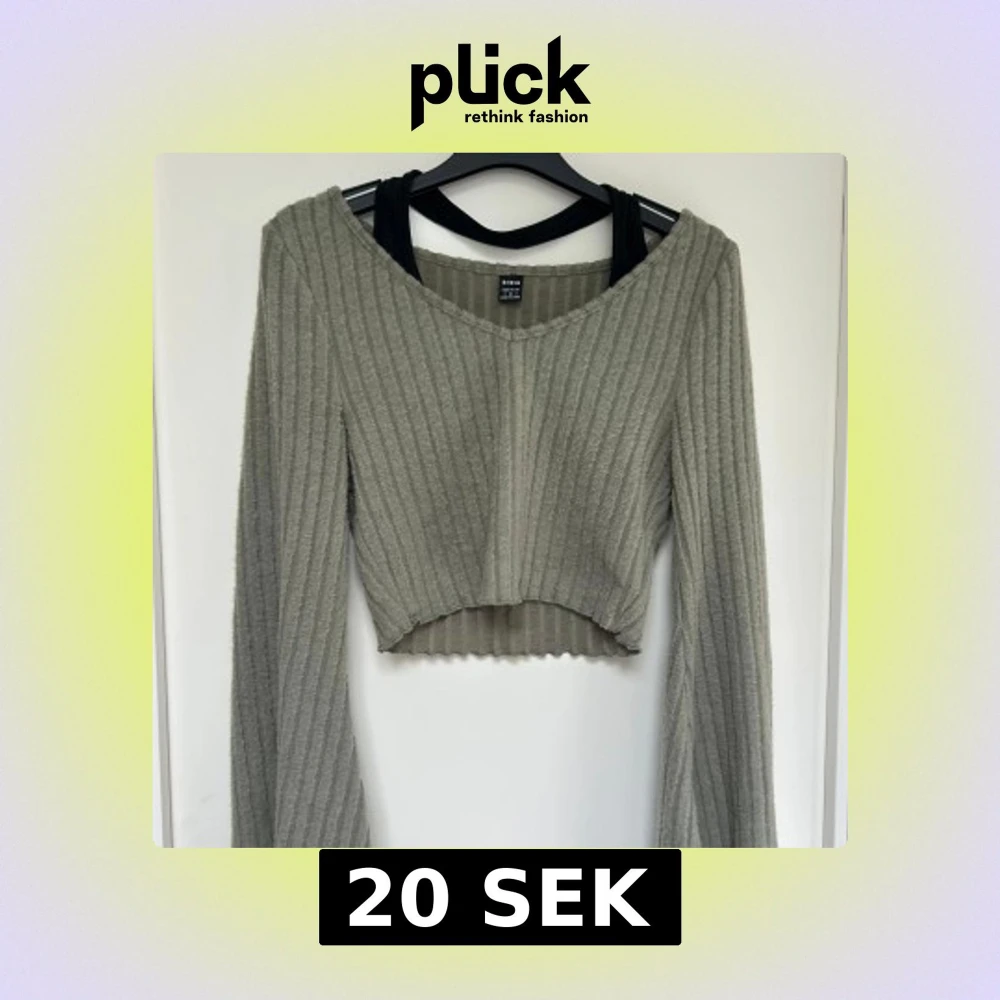 Grön croppad tröja från Shein med v-ringning och långa ärmar. Tröjan är ribbad och har en mjuk, stickad känsla. Perfekt för dig som gillar en chill och trendig look. Passar snyggt till både jeans och kjol.