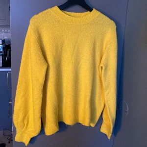 Färgglad, gul, skön, stickad tröja från Pieces i storlek L.