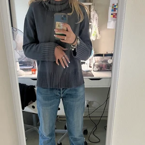 Grå stickad polo tröja med slits på sidorna. Köpt här på plick.