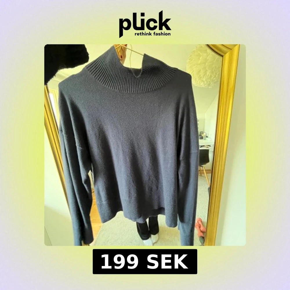 Snygg mörkblå polotröja från bikbok med ribbad hög krage och breda muddar vid ärmslut och nederkant. Bra skick💕