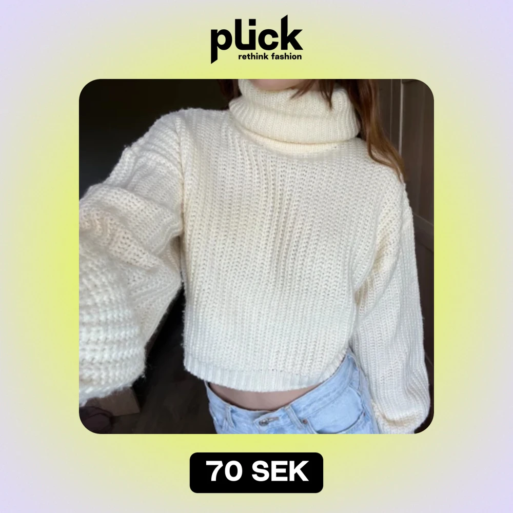 Mjuk stickad långärmad tröja med turtleneck krage. Nästan helt oanvänd. Benvit/cream white.