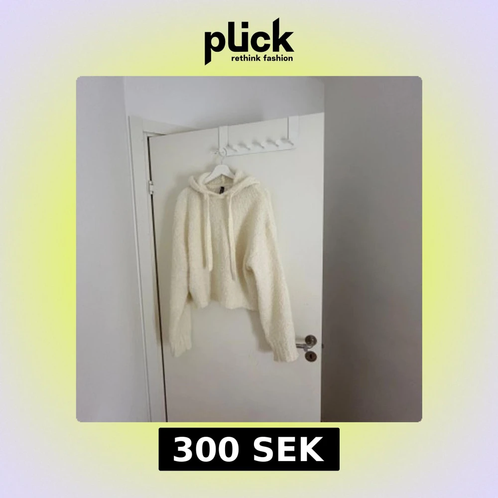Mysig vit stickad hoodie från H&M. Den har en luva och långa ärmar, perfekt för kyliga dagar. Tröjan är croppad och har en avslappnad passform. Perfekt för en casual look!