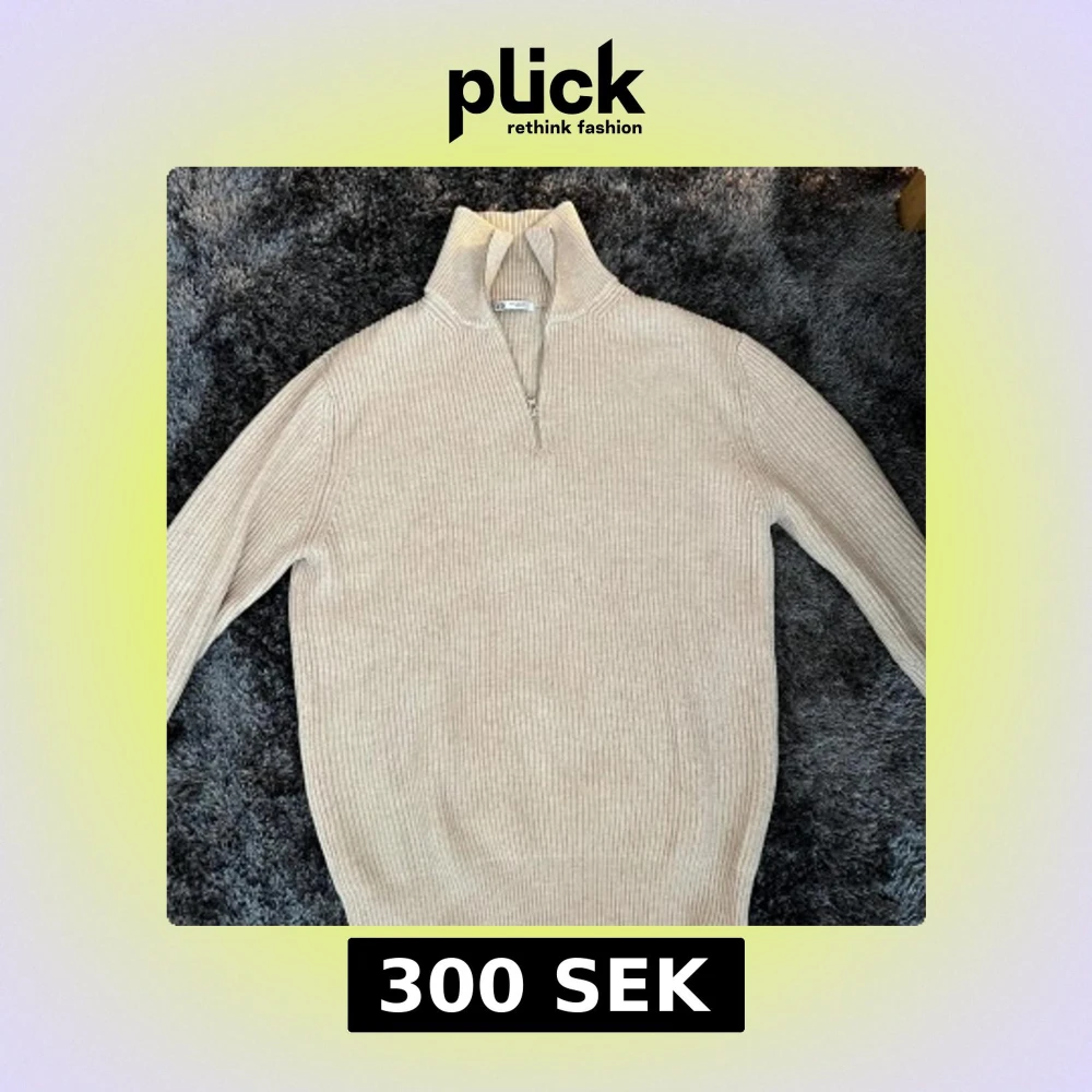Säljer en beige ribbstickad tröja från Zara i storlek L. Perfekt för lager-på-lager och snygg höst- eller vinterstil.