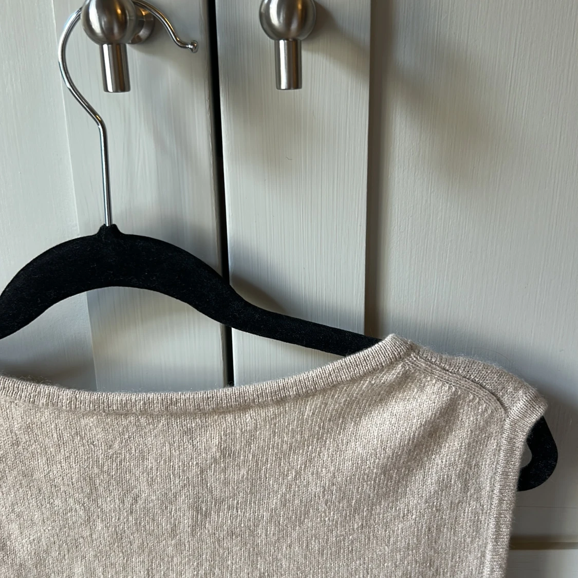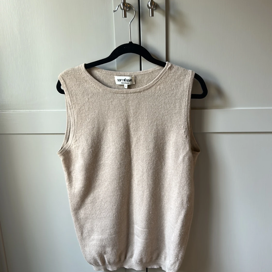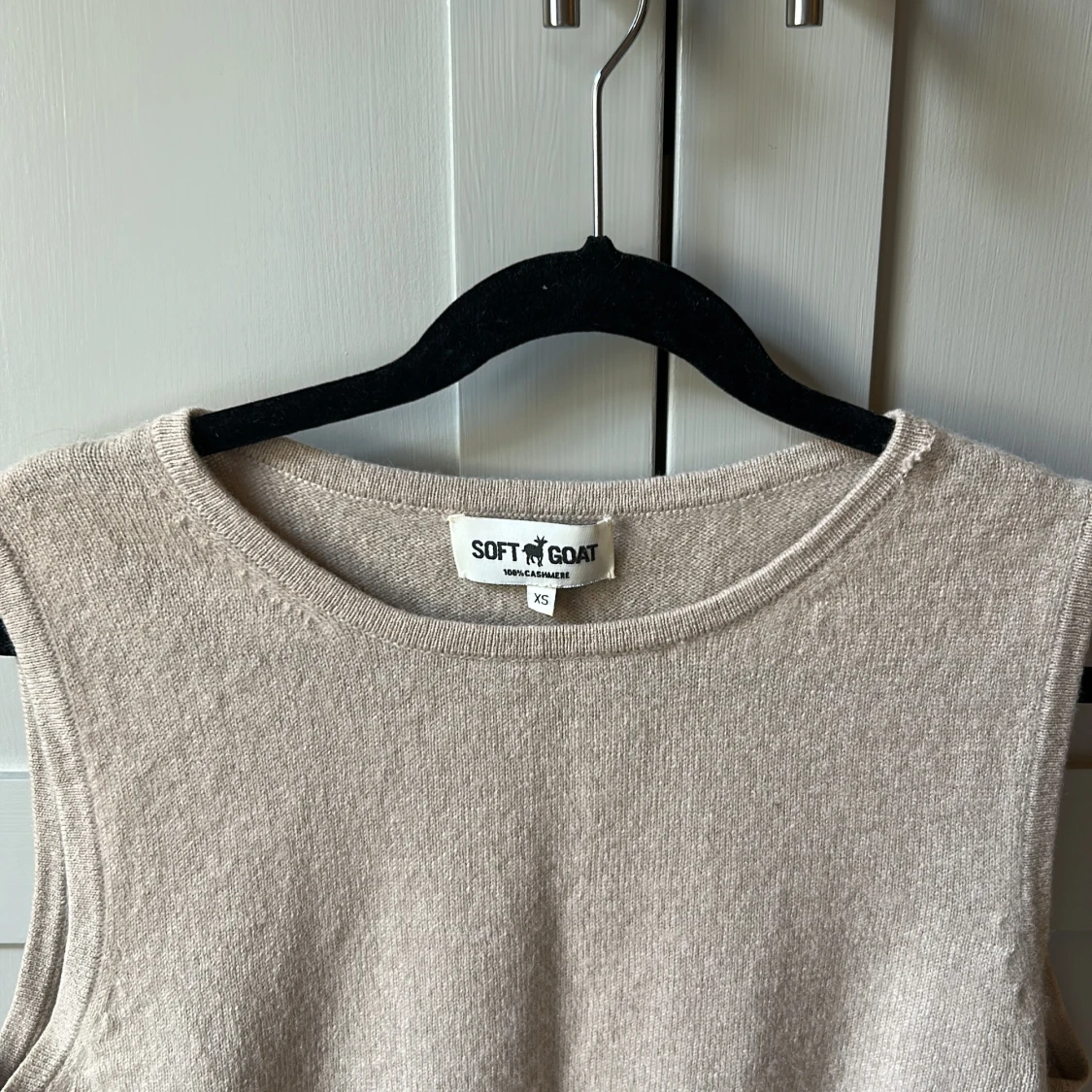 Minimalistisk beige väst i 100% kashmir från Soft Goat. Modellen är ärmlös med rund halsringning och ribbad nederkant. Perfekt för lager-på-lager och ger en clean look till din outfit.
