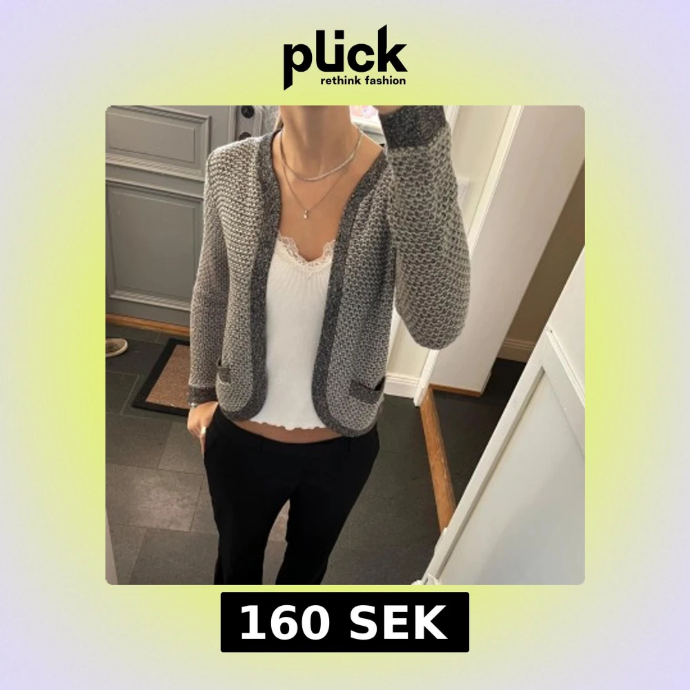 Grå/glittrig stickad kofta från Åhlens i storlek S. Fint skick. Använd gärna köp nu!