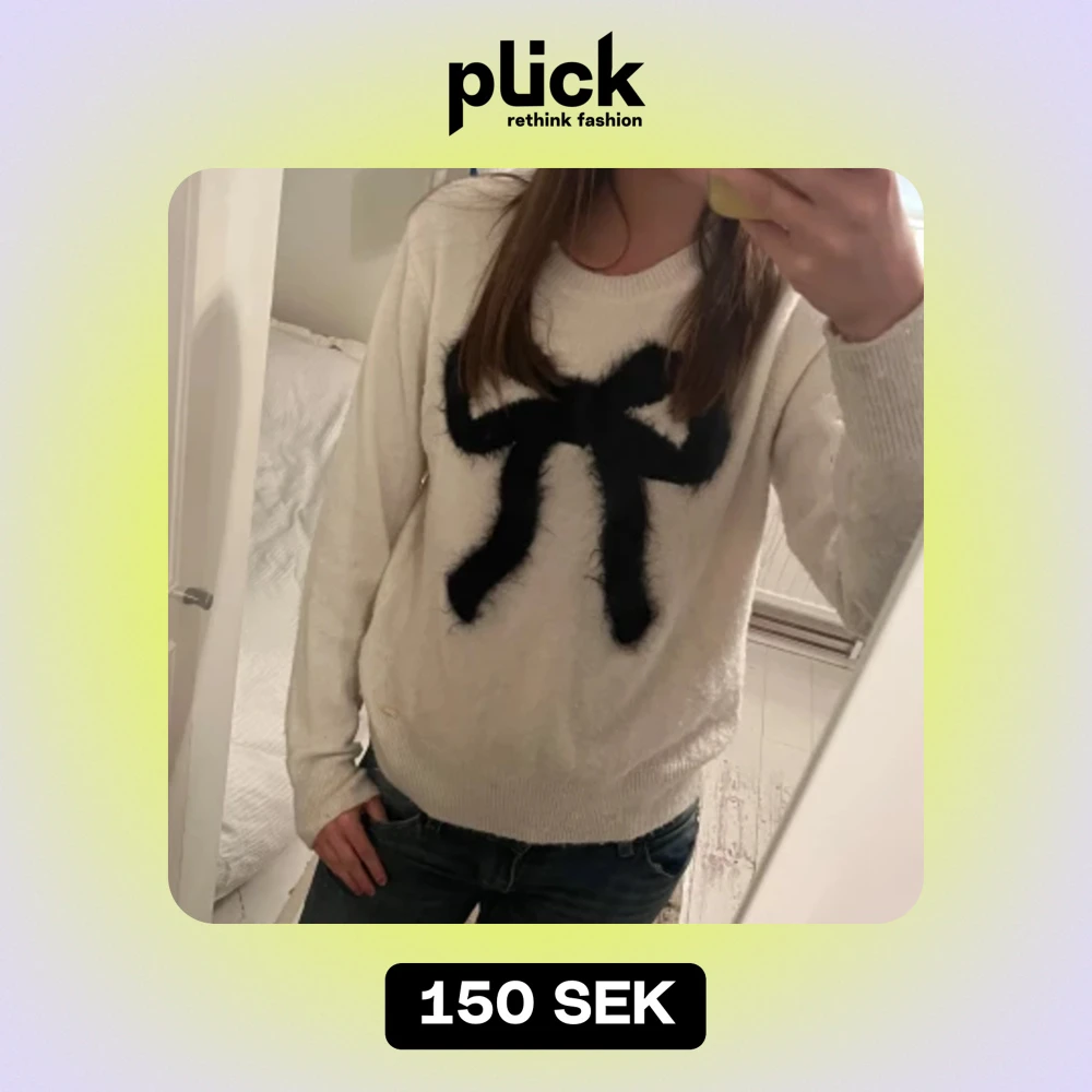 Jätte söt vit stickad tröja med en rosett i mitten. Inte använt ofta och i gott skick.