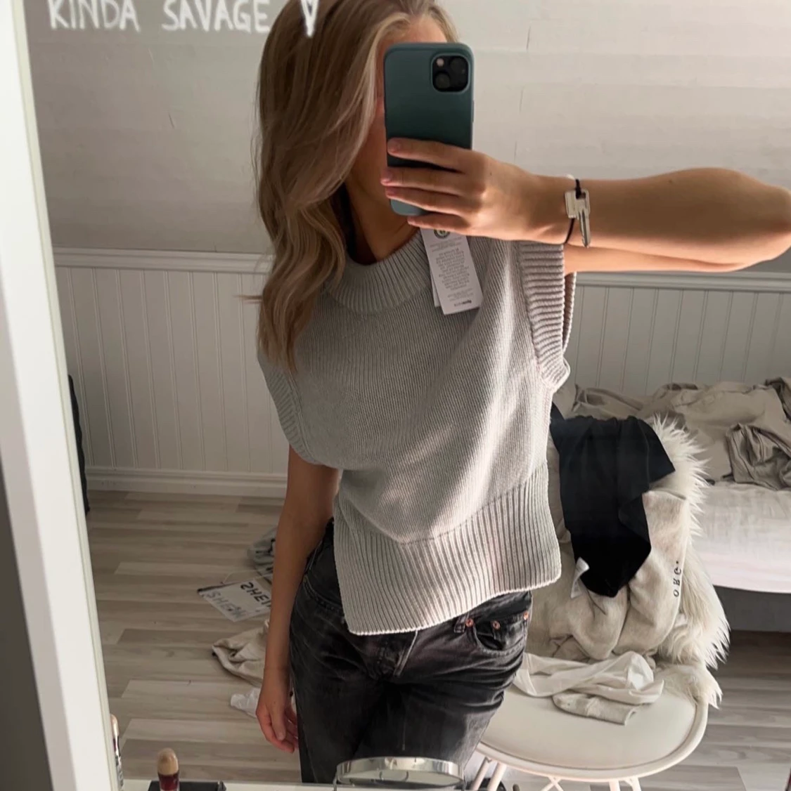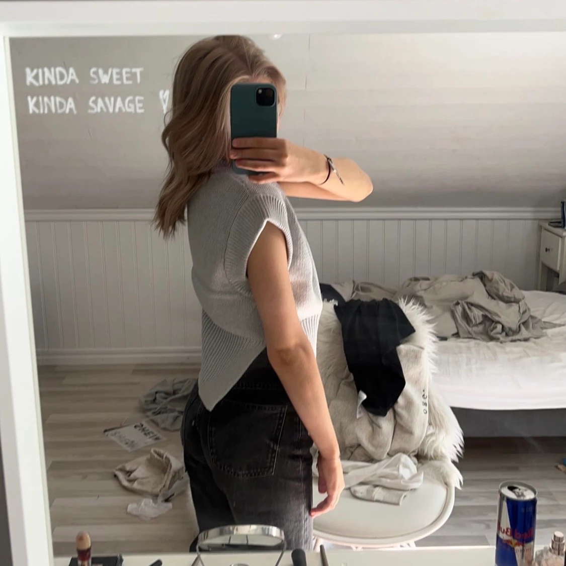 En skit fin stickad grå väst från gina tricot. Prislappen kvar, aldrig använd. 100kr köparen står för frakten.💗