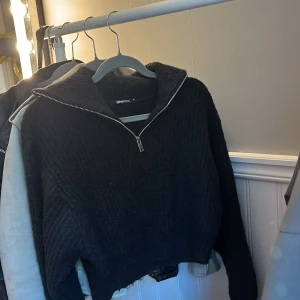 Fin svart stickad halvzip💕 Skriv för fler frågor/bilder🤍
