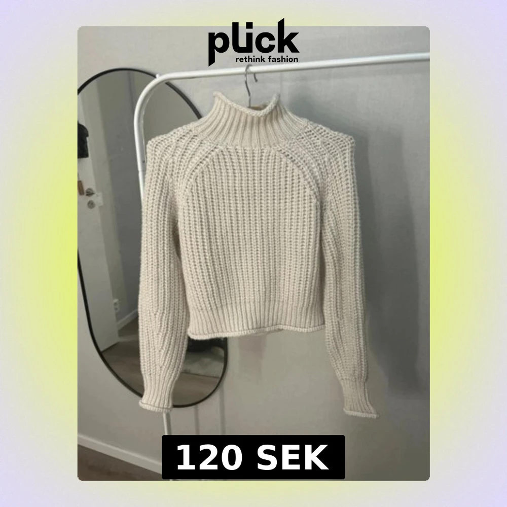 Säljer en vit stickad polotröja från H&M i storlek XS. Tröjan har grov ribbstickning, hög polokrage och långa ärmar. Modellen är lite croppad och har en snygg, klassisk look som passar perfekt till till exempel jeans och smycken! Köpt av en tjej på vinted för 130 kr! Säljs då den inte passade mig men tröjan är ny utan prislapp!!🥰Djur och rökfritt hem, pris kan diskuteras!