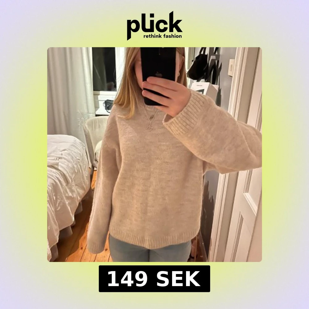 Mysig beige stickad tröja från Gina Tricot med rund halsringning och ribbade muddar. Tröjan har en loose passform och är perfekt för lager-på-lager under kyliga dagar. Aldrig använd 💓